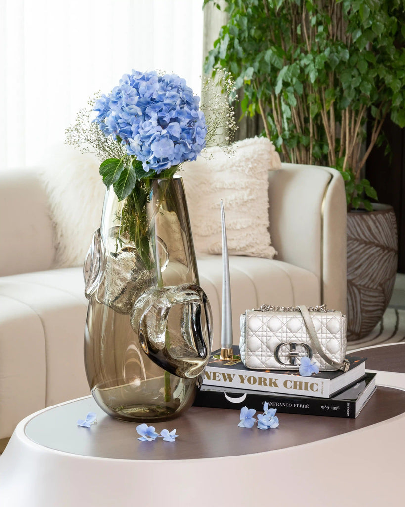 The Deep Smoke Touch Glass Sculpture Vase by Glasremis is a striking piece of collectible art, masterfully designed by renowned Lithuanian artist