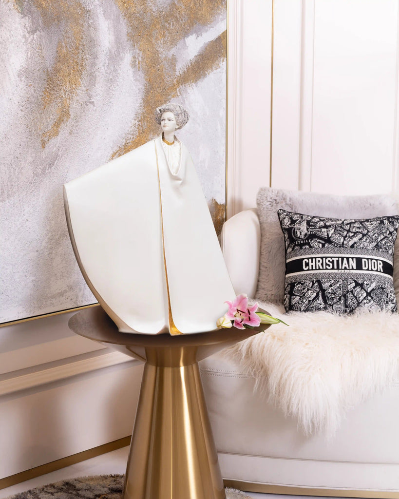 The Ninlil White porcelain figurine by Sibania, envisioned by founder and artist Paolo Frigo, embodies the pinnacle of Italian porcelain artistry. The name Ninlil