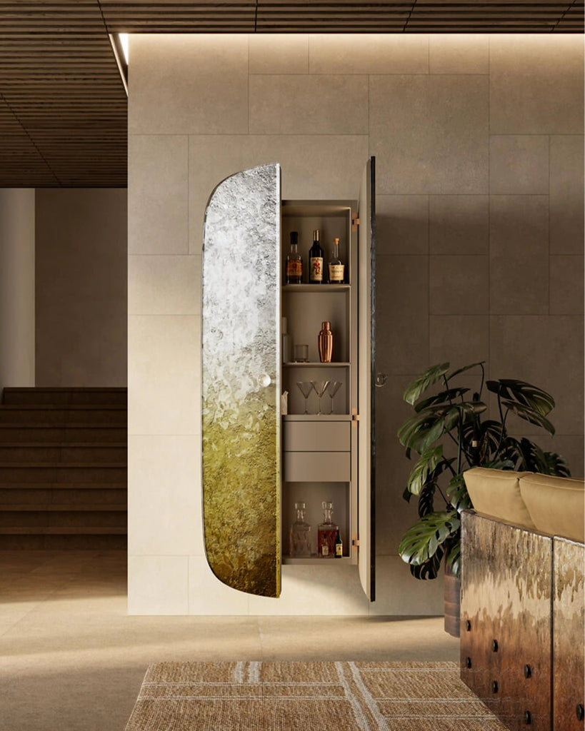 The Ostrega Cabinet by Arte Veneziana, designed by Leo De Carlo, is a stunning expression of contemporary artistry born from the
