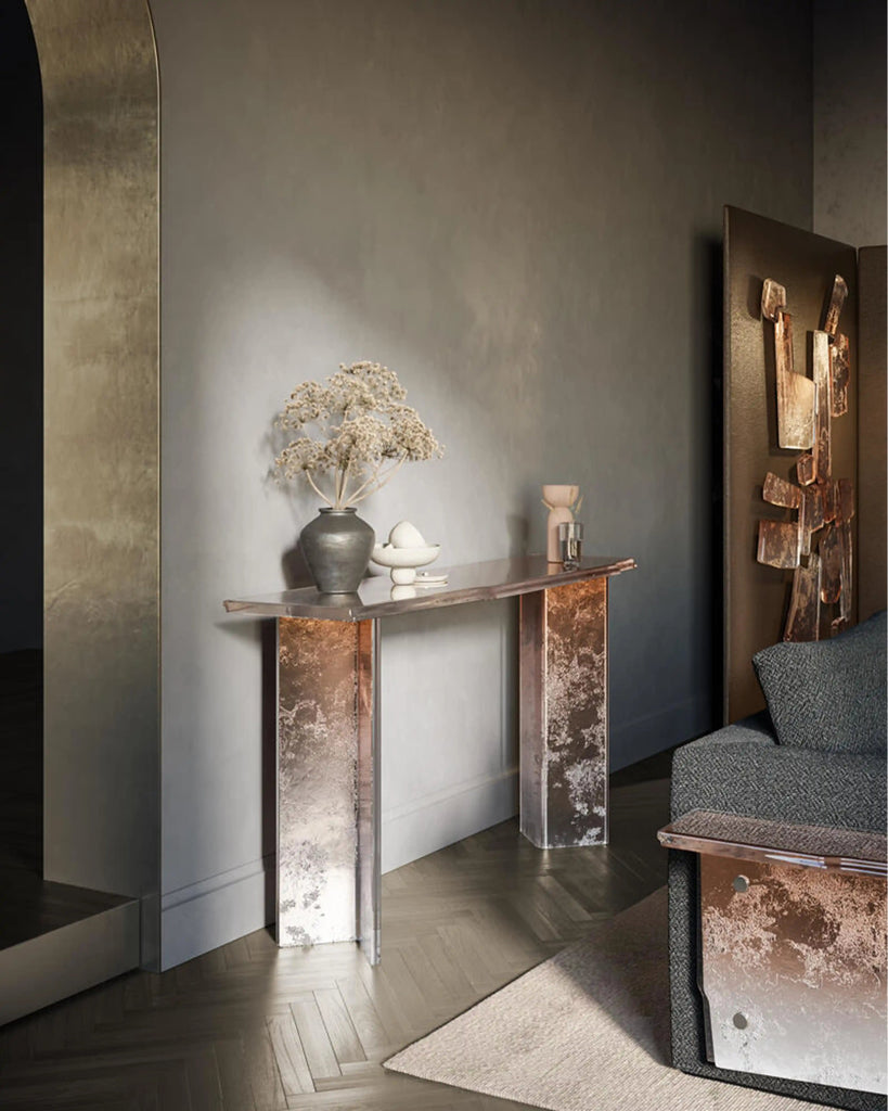 The Paganelo Console by Arte Veneziana, designed by Leo De Carlo, is an exquisite testament to the fusion of art, craftsmanship,