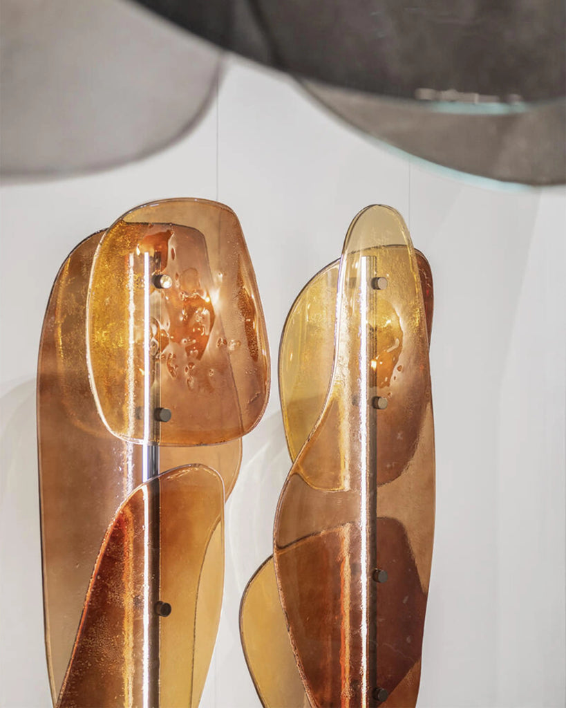 Venetian designer Leo De Carlo draws inspiration from the fluid beauty of water and the chromatic play of light across the lagoon. His design for Volpina transforms these natural elements into sculptural form—where each glass plate captures the essence of movement and reflection. The chandelier’s irregular geometry and layered luminosity mirror Venice’s living landscape, bringing a poetic and contemporary presence to any space.