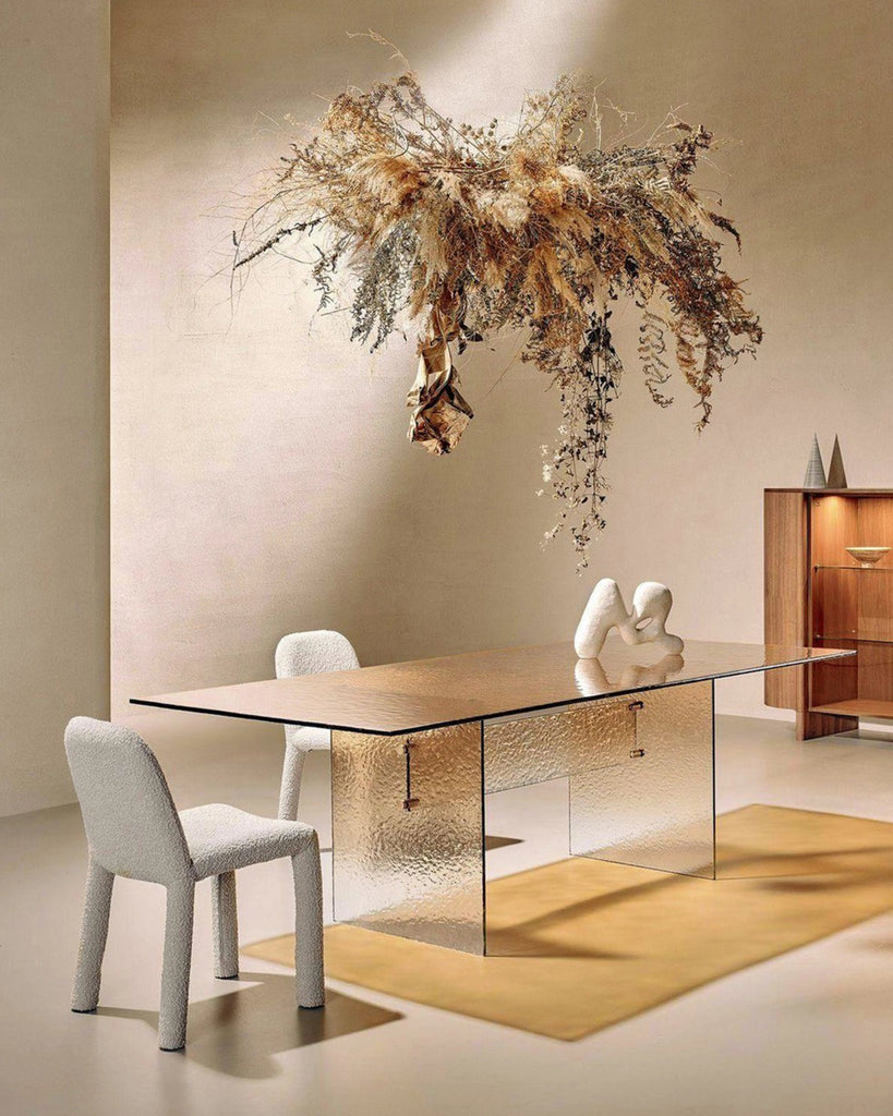 The Waterfall Table by Naturedesign is a stunning fusion of art and function, entirely sculpted from cast glass. With its
